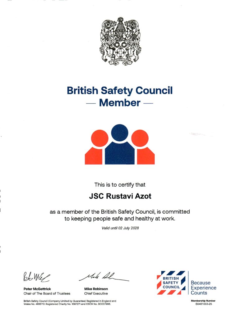 JSC Rustavi Azot (Indorama) is committed to excellence, safety, and sustainable operations. Our dedication is reflected in the various national and international certifications and awards we have received over the years, demonstrating our adherence to quality, environmental responsibility, and workplace safety.