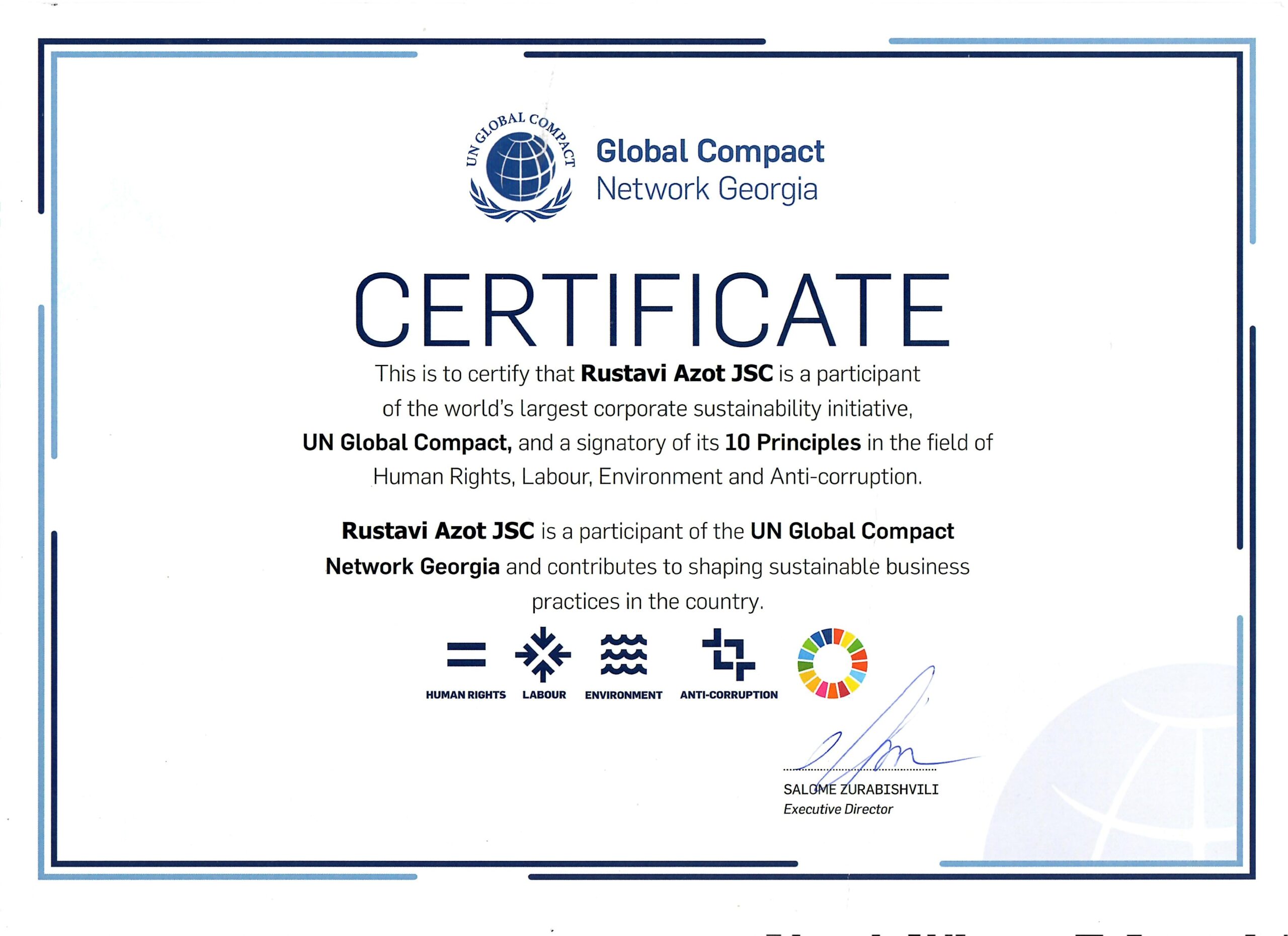 UN Global Compact Certificate